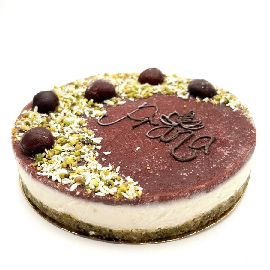 Растительный веган десерт в виде торта, который не содержит лактозу, глютен, белый сахар и химию. По вкусу напоминает привычный чизкейк, только без белой муки. У него тающая во рту текстура и мягкий вкус, оттененный кислинкой вишни. Готовится без выпечки из натуральных и полезных ингредиентов.