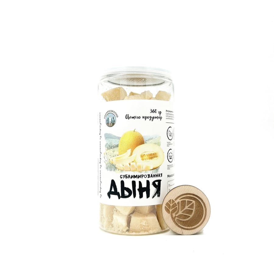 Натуральные ломтики дыни, выращенные на плодородных землях южного Кыргызстана и сохраненные методом сублимационной сушки. Технология позволяет сохранить 95% витаминов и минералов свежего плода, натуральную медовую сладость, тонкий летний аромат, хрустящую воздушную текстуру. Без добавления сахара и консервантов.