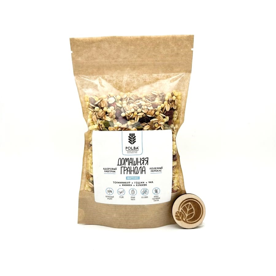 Домашняя гранола "ФИТНЕС" ручной работы с низким содержанием глютена от ремесленной мануфактуры POLBA — здоровый завтрак и полезный перекус, который подойдет веганам и тем, кто следит за своим рационом.