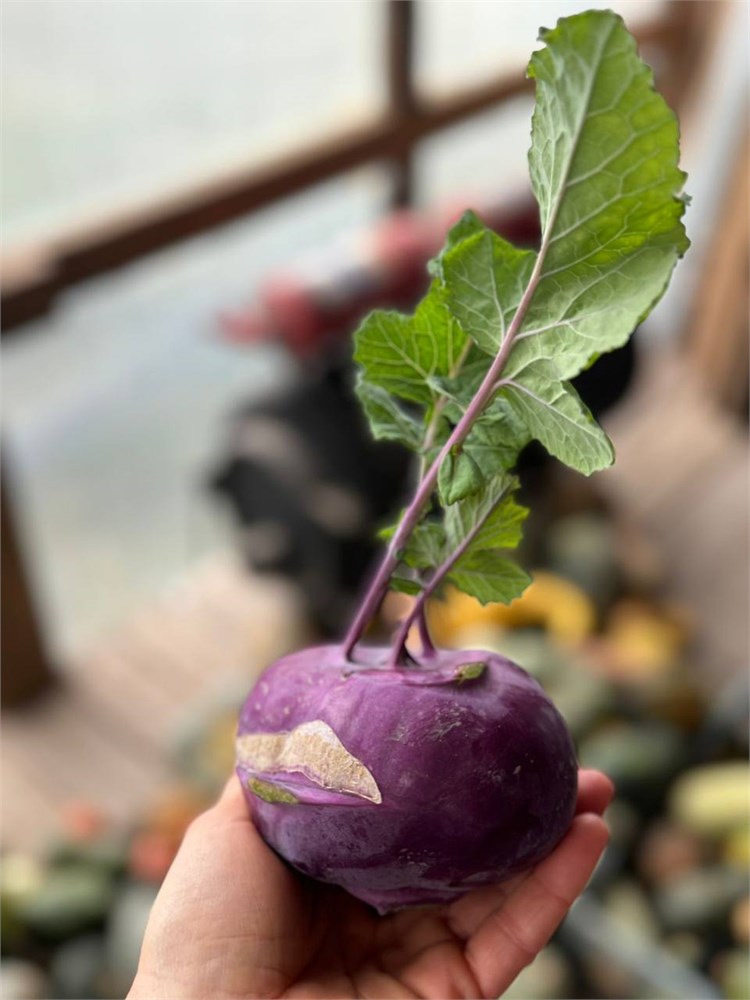 Фиолетовая капуста кольраби — это сочная и хрустящая капуста с мягким, перечным и сладким вкусом, напоминающим брокколи, белокочанную капусту и огурец. Как и зелёную кольраби, её можно употреблять как в сыром, так и в приготовленном виде. Кольраби — отличный компонент для различных салатов, супов, гарниров и других блюд.