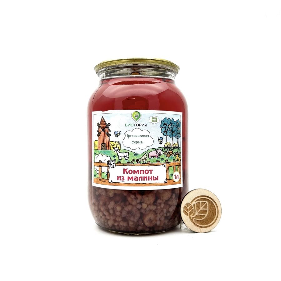 Компот из органической малины, КФХ БиоТория, 1 литр