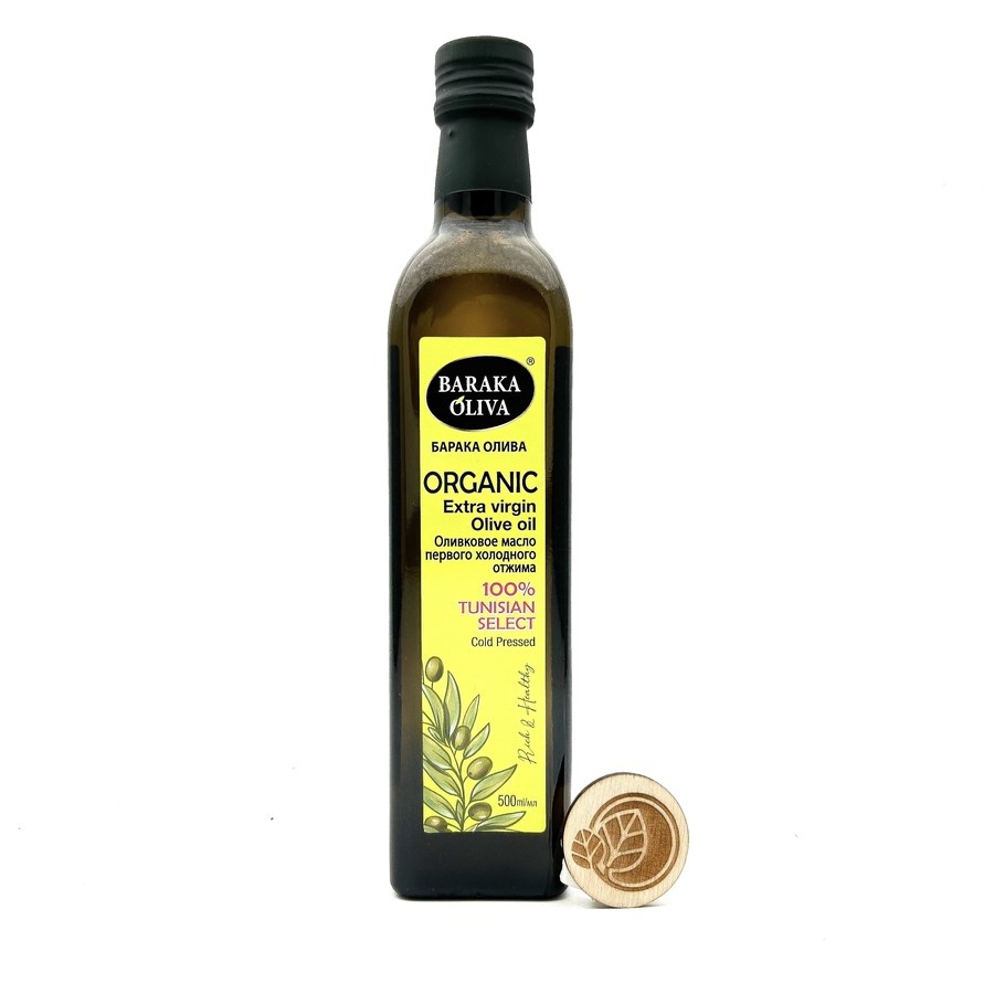 Органическое (российский сертификат) нерафинированное оливковое масло первого холодного отжима "БАРАКА ОЛИВА" с кислотностью <0,5%, произведенное в Тунисе. Вкус у масла естественный, гармоничный и сбалансированный, оно великолепно раскрывает вкус блюд, подходит как для заправки салатов, так и для приготовления пищи. Оливки выращиваются без применения агрохимикатов и собираются вручную.