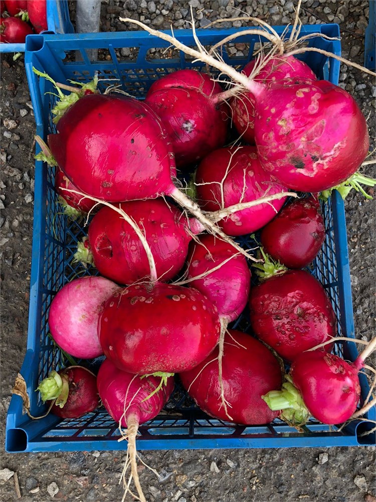 Розовая редька от "О,Батат" обладает характерным сладковато-острым вкусом, напоминающим вкус традиционной черной редьки, но более мягким и менее горьким. Она имеет хрустящую текстуру и свежий, яркий аромат. Редька используется как компонент свежих салатов, а также в качестве хрустящей закуски, так как хорошо сочетается с различными соусами, например, хумусом или йогуртовыми соусами. Редьку можно подавать как гарнир в запеченном или тушенном виде.