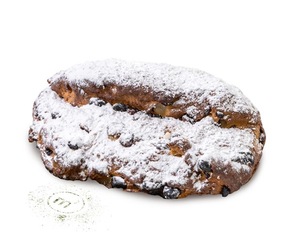 Традиционный ароматный рождественский кекс с согревающими пряностями, миндалем и изюмом, вымоченным в темном роме с пряностями. В основе штоллена — плотное, сдобное дрожжевое тесто. Поверхность кекса полита сливочным маслом и присыпана сахаром и сахарной пудрой. Штоллен имеет очень богатый аромат, в котором отчётливо угадываются нотки кардамона, черного перца и мускатного ореха.